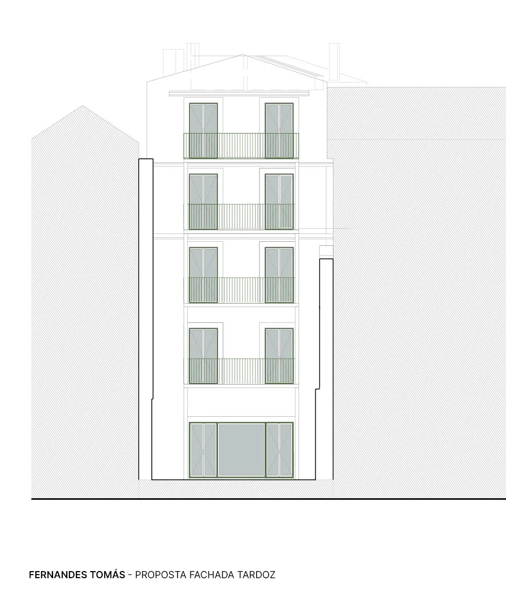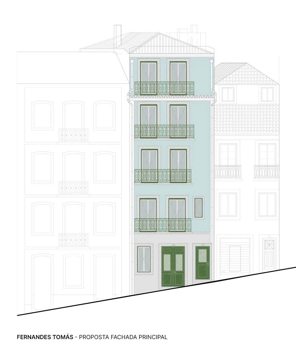Os trabalhos contemplam a demolição integral dos pavimentos, paredes interiores e cobertura, bem como o reforço estrutural das paredes periféricas pelo interior, através da aplicação de malha de aço e projeção de microbetão. Já a nova estrutura interior será executada em Light Steel Framing (LSF), com contraplacado marítimo – um sistema construtivo composto por elementos de baixo peso próprio, maior precisão e rapidez na execução, ideal para contextos urbanos com acessos condicionados.